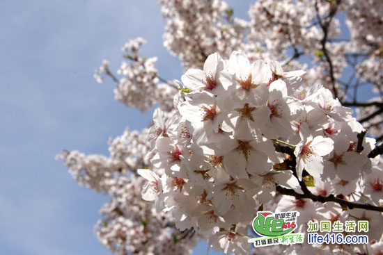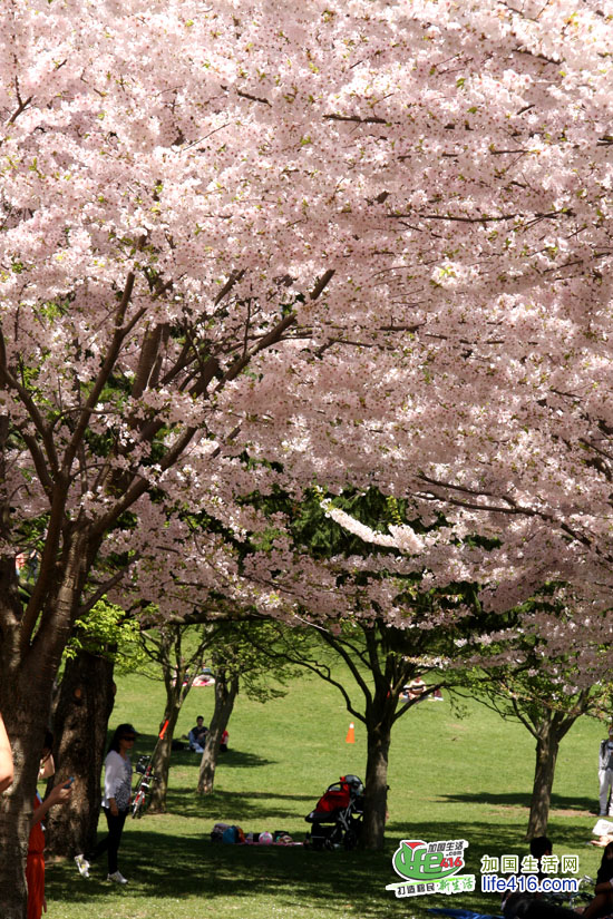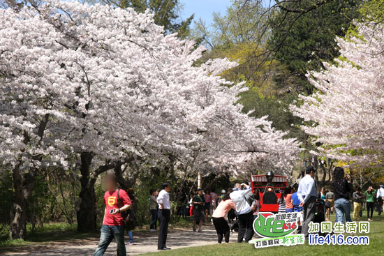 2013年4月30日:据high park官方微博报道,4月30日的樱花已经能够看到花的雏形了,公园方面称樱花已经开了0.05%。这三天这么暖和,有粉丝说已经拍到公园内开花的樱花了,小编估计樱花能开到10%了吧,如果你着急的话,这个周末或许能够看到部分樱花,全部怒放应该要等到下周。另外,多伦多大学Robarts Library的西南面的一片樱花树正在怒放,而稍微西一些的HIGH PARK里的樱花明显是晚了半拍的样子,小编想这可能多大更南更温暖一些的原因吧,呵呵。