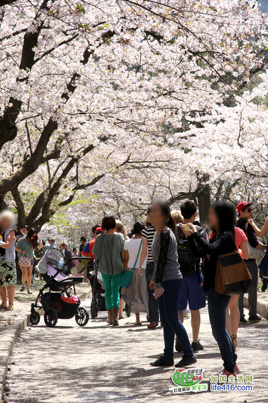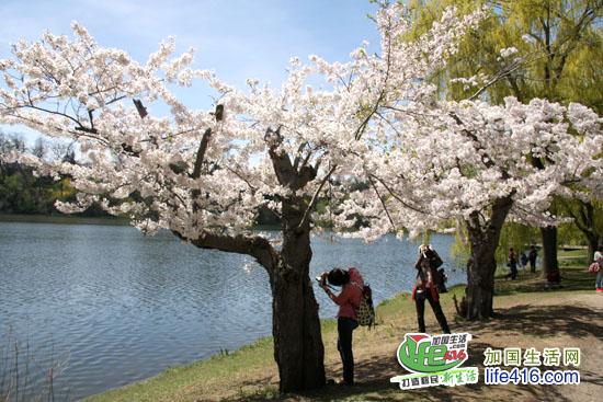 2013年5月7日,想去看樱花的朋友们要抓紧了,High Park的樱花中那一大片最密集的樱花群花瓣已经落了不少了,靠近湖边有几棵樱花树倒是正开得浓密。建议大家坐TTC去(东西向的TTC 地铁在High Park有一站,出站后往右走到Bloor街,街对面就是High Park 的主入口),不要以为不是周末就有停车位,去看樱花的人特别多,哪天去都找不到停车位。与其闹心花时间找车位,不如坐TTC了,方便。另外,这个周末有雨,到时一定会打落不少樱花,因此这几天应该是赏樱的最后的时机,一定不要错过了。