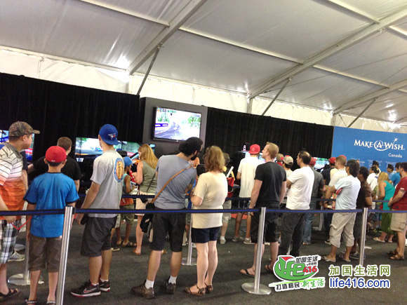 除了看赛车比赛外,大家还可以到旁边的大篷里玩赛车游戏,不能到现场比赛,也可以通过游戏感觉玩赛车的乐趣。