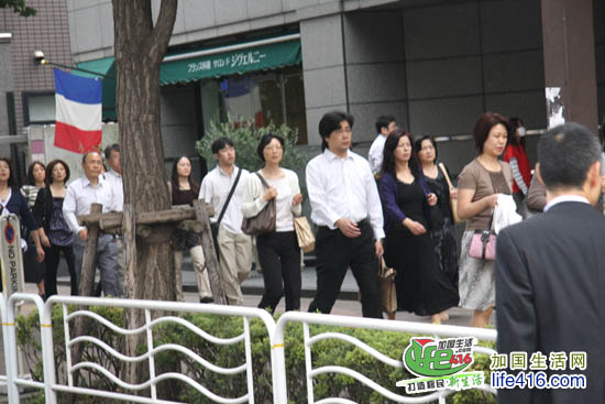 【加国生活网】迎着晨光,我们开始了一天的东京自由“行”。早晨八九点正好是日本人上班的时间,迎面走来了一群群行色匆匆的上班族。