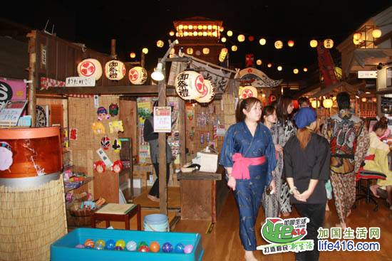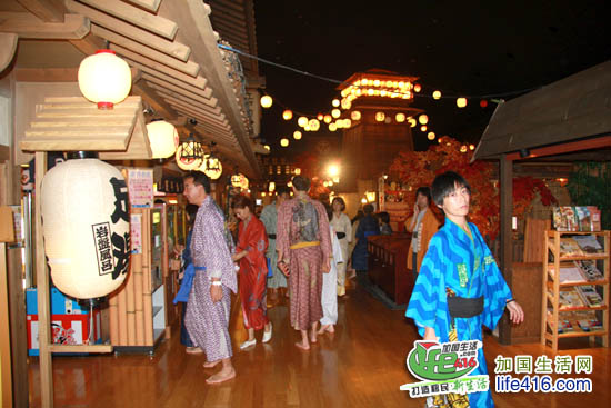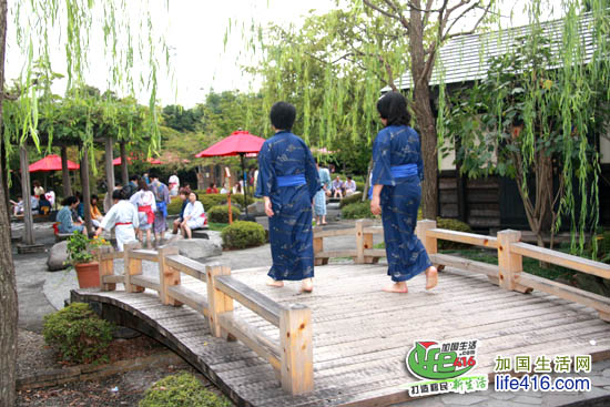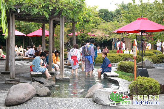 同日本富士山温泉不同的是,大江户温泉物语有一处不分男女老幼全家一起共享温泉欢乐的地方——“足汤”温泉。50米长的足汤步道两侧,是绿色树木错落有致的日式庭院。而步道全部用圆石铺成,让石头先给你的脚按摩一下,再去泡“足汤”,一定会很舒服的。