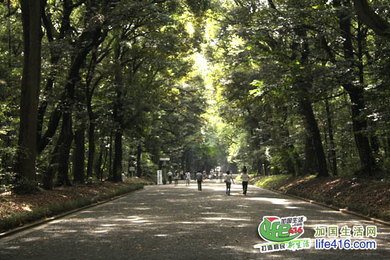 而在“原宿”站的西面,就是代代木公园,在代代木公园往南走10分钟左右,就能到达明治神宫。