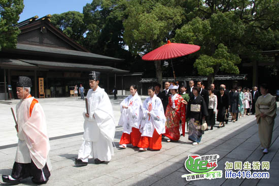 明治神宫与日本人的生活可谓息息相关。每年都有多场新生儿命名仪式、成人礼、毕业典礼和婚礼等各种人生重要仪式在明治神宫举行。日本很多偶像明星的成人礼就在此举行,吸引了不少拥趸追访。而明治神宫每年上千场的日本传统婚礼,更为这里增添了一道精致美丽的风景。