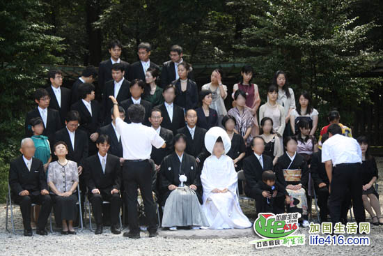 朋友说,日本男人一生会准备一套黑西服、一条白领带和一条黑领带,这套黑西服可同时用于参加婚礼和丧礼,参加婚礼时就系白领带,参加丧礼时就系黑领带。看到没,这里的男人系的可全都是白领带,挺有意思的。