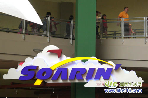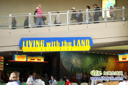 在Disney 这种大的主题公园玩,千万不能见着眼前有什么新奇的东西就去玩,进园后的第一件事,就是要去有FP 的景点去取FP。根据我们在网上查到的资料,Epcot 里一个名叫Soarin 的景点特别受欢迎,所以我们先去公园右边8点景点去取Soarin 的FP。8点景点是一个叫做Land 的大馆,里面的装饰布置很有创意。