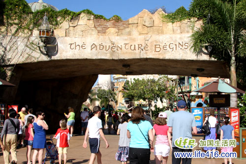 很快就看到了带有“Islands of Adventure”标志的高塔。这个高塔有点像指南针的作用,一旦我们在里面迷路了,找到高塔的位置就找到了方向。