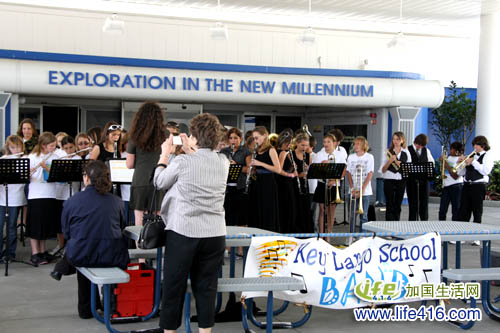 正准备在中心内参观呢,突然听见那边传来音乐声,走近一看,原来是一个由美国高中生组成的乐队正在那里演奏……
