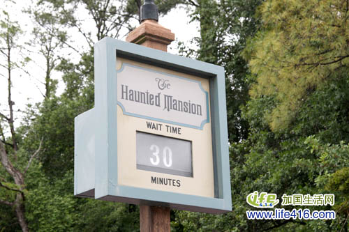 【加国生活网专稿】公园的第17号景点“The Haunted Mansion”被网友们称作是个阴森恐怖、“鬼魂出没”的地方,不过,西方人好象天生不怕鬼(这个从“万圣节”的活动中就可以看出来),这个闹鬼的豪宅门前的热闹非凡,队伍也排得很长。