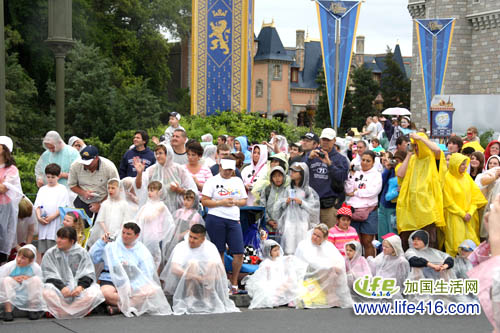 虽然游行的时候天公不做美,下起了大雨,但丝毫没有减少游客们观看游行的热情。
