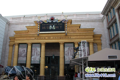 在已经快要关园的时候,我们奔到这个景点,好在还放人进入,终于有机会感受到这个项目。大屋子里面的装饰全是古埃及墓穴里的样子。好在没有多少人排队,我们才能穿过“迷宫”一样的排队线路一路狂奔来到坐车的地方,这才发现,这个项目原来是个室内版的过山车,游客感受的是古埃及以及木乃伊的场面,周围的布景不是骷髅就是塑像,还向外喷火,就好象是电影《Mummy Returen》(木乃伊归来)的情节。因为已经经历过“探险岛”里最最恐怖的两个过山车,此时倒是觉得自己坐过这种过山车已经是小case、没感觉了(注意:这个景点需要存包,在入口的右手处有指纹密码箱)。