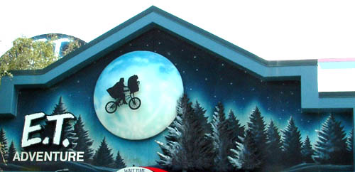 1982年,由好莱坞著名导演Steven Spielberg执导了一部温馨的科幻片《E.T.》,讲述了一个被同伴不小心留在地球上的外星人与小男孩Elliot建立起纯真友谊的故事。20年来这部影片受到了全世界影迷的热爱,成为妇孺皆知的电影经典。2005年,英国第四频道电视台还透过网络进行公开票选,选出一百部最适合全家观赏的电影,结果这部《E.T.》拔得头筹。由此可见,把《E.T.》改编成Universal Studios其中一个景点绝对会吸引许多人的眼光。这个景点的项目虽然不是很惊险,但绝对是很真实,在导演Steven Spielberg的解说下,由车载着游客感受一个真正的《E.T.》世界。