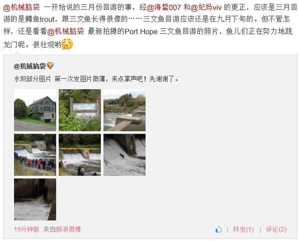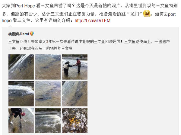 感谢@魔羯Demi 和@机械脑袋 传来的有关port hope 三文鱼的照片(请看加国生活网的新浪微博):