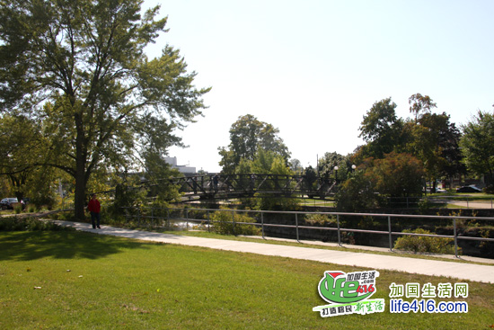 停好车后,大家沿着Walton St. 一路向东,在快到达Mill St. 的时候,会看到一座桥,桥下就是Ganaraska River,这条河就是三文鱼从安大略湖回流的必经路线。