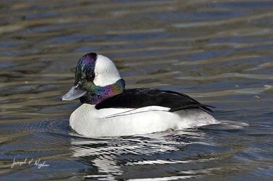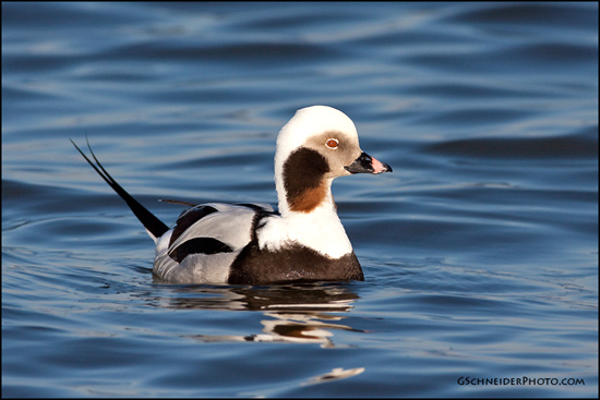 小编的3CCD的专业摄像机虽然能拍到很远的地方,但真要看清楚水鸟们长什么样,还得需要这两位老人所使用的高倍数的望远镜,估计这种望远镜是可以看天上的星星的,所以看这些水鸟们是相当容易的,也是相当清楚的。当一位老人让小编看望远镜中的水鸟的身影的时候,小编“哇”的一声叫起来,因为望远镜中的水鸟们太美了,有黑白头的,有红头的,还有长尾巴的。老人如数家珍地介绍说:“这些ducks中,红头的水鸟就叫Redhead Duck,长尾巴的就叫Long-tailed Duck,那个黑白头的叫Bufflehead Duck……它们有些随着季节的不同,羽毛的颜色还会变化的,而且雌雄的颜色也不一样……很有意思……”