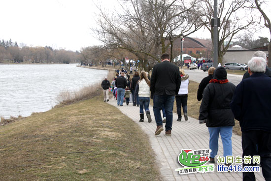 星期天下午,来自安省各地的人们沿着河边走到即将天鹅大游行的Lakeside Drive。