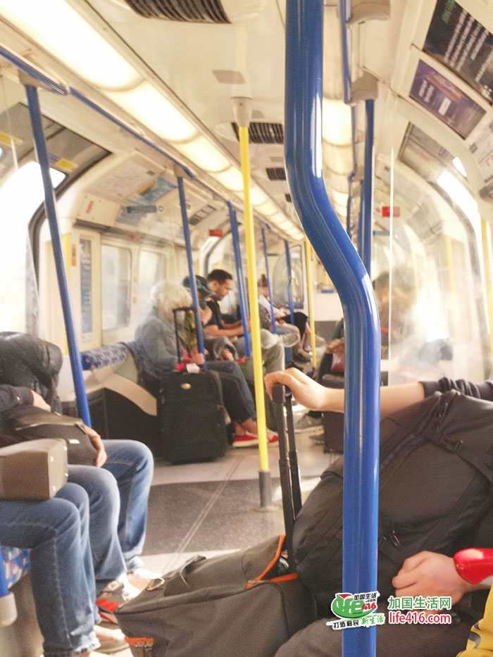 underground地铁车厢里是这个样子的,刚从Terminal 4开出来,车厢里的人还不多。但我们的出发时间刚好赶上了英国人的上班时间,眼见着车厢里的人越来越多