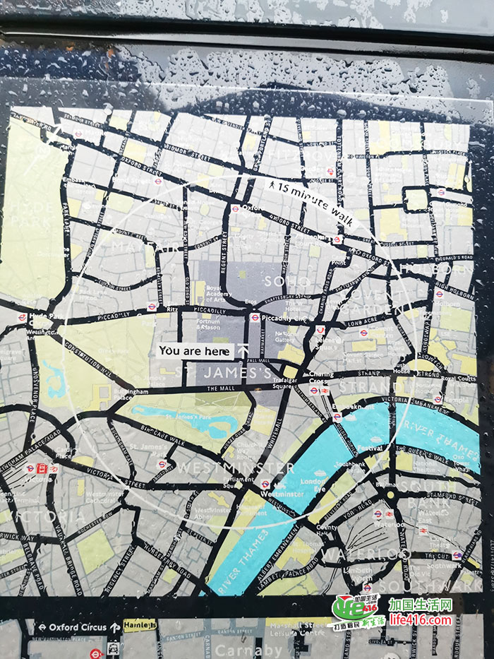 伦敦市中心的大街上好多地方都设有地图,方便游客找到路。