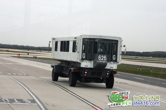 哈哈,原来这是从候机大厅到飞机停机坪之间运送乘客的中转车。这是司机准备启动中转车的场面。