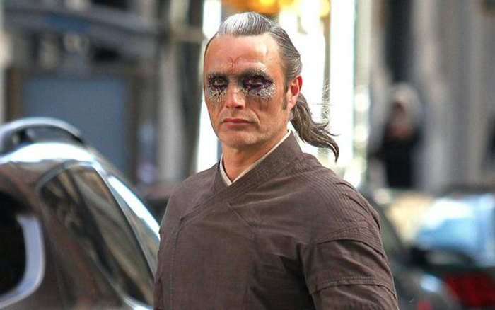片中的反派由Mads Mikkelsen饰演,于是漫威宇宙不仅有两个福尔摩斯(Benedict和钢铁侠小罗伯特·唐尼),还有了两个汉尼拔(安东尼·霍普金斯演了雷神之父奥丁)。至于Mads Mikkelsen如何入伙,这位超级爱拍动作戏的朋友自曝是听到导演说到电影里面有很多功夫和飞行,于是他马上来劲,近乎欢喜地跳跃:“我都108岁了(随时自黑的老汉,实际年龄51岁)还有机会飞来飞去的,太棒了。”Benedict也证实Mads Mikkelsen对动作戏颇有研究:“虽然说他100岁了,但他的动作跟20岁的小年轻一样敏捷,他一直关照着你,确保你不会被打脸或受伤……他是最低调和最无敌的绅士。”另外虽然Mads Mikkelsen的造型让密恐患者们不忍直视,不过电影中反派们一开始并没有“毁容”