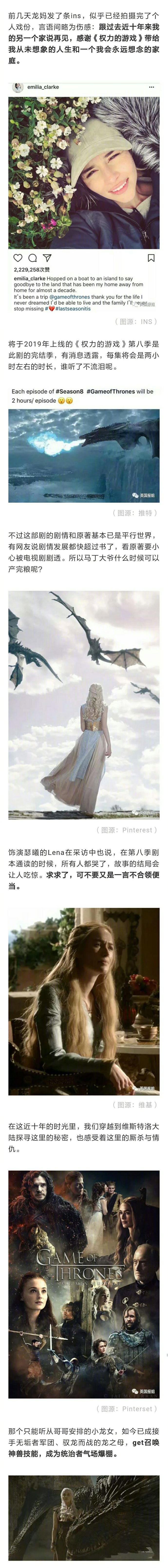 《权力的游戏》最后一季将于明年上线 龙妈日前发INS伤感道别 真的很舍不得了