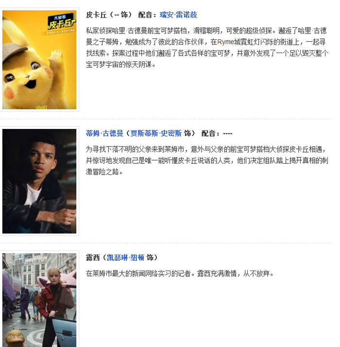 《Pokémon Detective Pikachu 大侦探皮卡丘》是一部由Rob Letterman执导并与Nicole Perlman共同撰写剧本,Ryan Reynolds、Kathryn Newton、Justice Smith领衔主演的真人动画科幻动作喜剧悬疑片。该片改编自2016年电子游戏《名侦探皮卡丘》,故事设定于人类与宝可梦和平共存的莱姆市,讲述了大侦探皮卡丘和Tim在莱姆市相遇,为了揭开Tim之父离奇失踪隐情,携手探案、追击真相的故事。