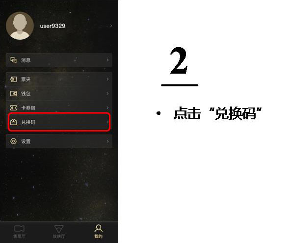 2、在手机最下面,点击“我的”,再点击“兑换码”