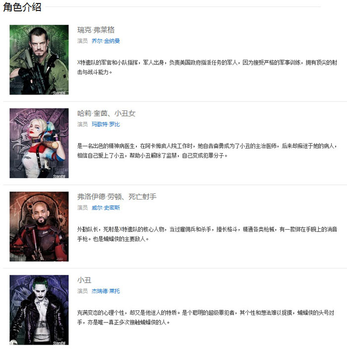 DC宇宙主力导演(《蝙蝠侠大战超人》)透露,自杀小队的每一位成员都与蝙蝠侠有仇,把他们送进监狱里的人正是蝙蝠侠。