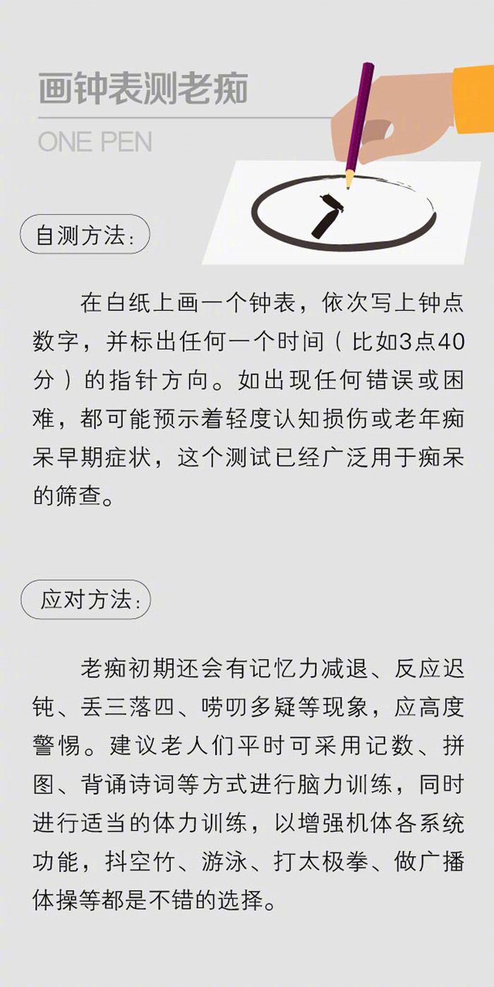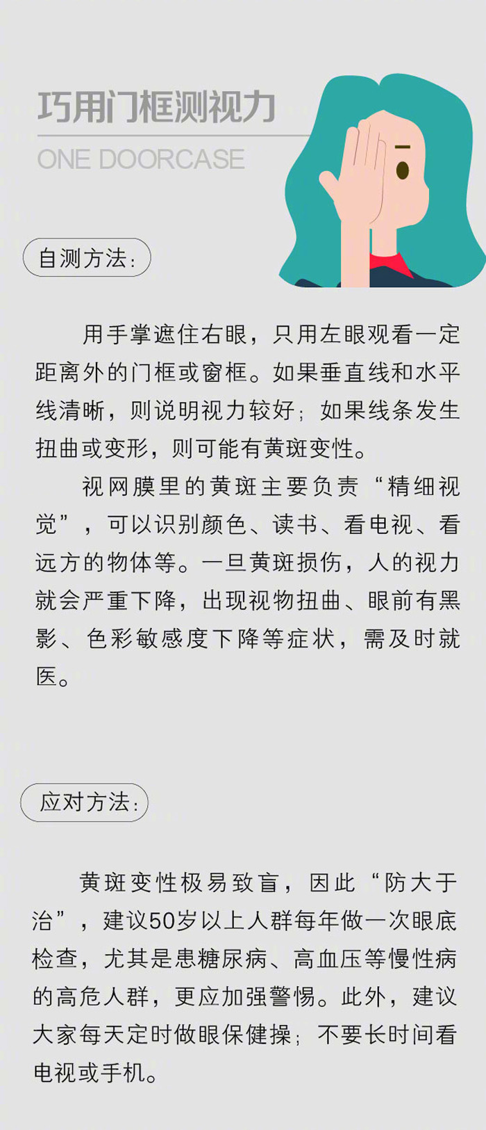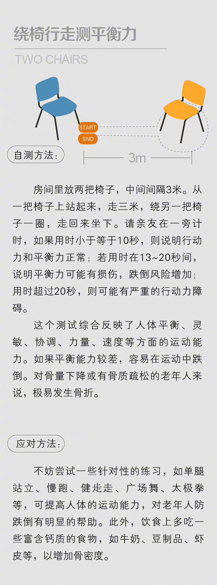 去医院检查费时费力?生命君教你一个在家就能用的“60秒健康自测法”:①一张白纸测甲亢;②餐勺刮舌测口臭;③画钟表测老痴;④巧用门框测视力;⑤绕椅行走测平衡力;⑥抬腿测血管堵塞;⑦双脚打拍子测心率。一起测测健康。