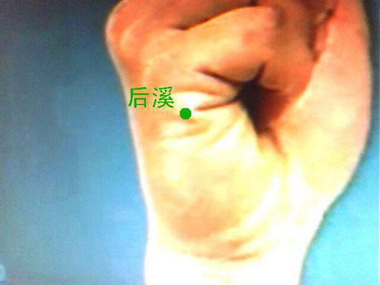 后溪穴是小肠经的一个穴。当你一握拳头,感情线延伸到小指一侧就有一个纹,纹头的点就是后溪穴。千万不要小瞧这个穴,这可是奇经八脉的交会穴,通督脉,能泻心火、壮阳气,能治各种汗症、咽痛,能调颈椎、利眼目、正脊柱。
