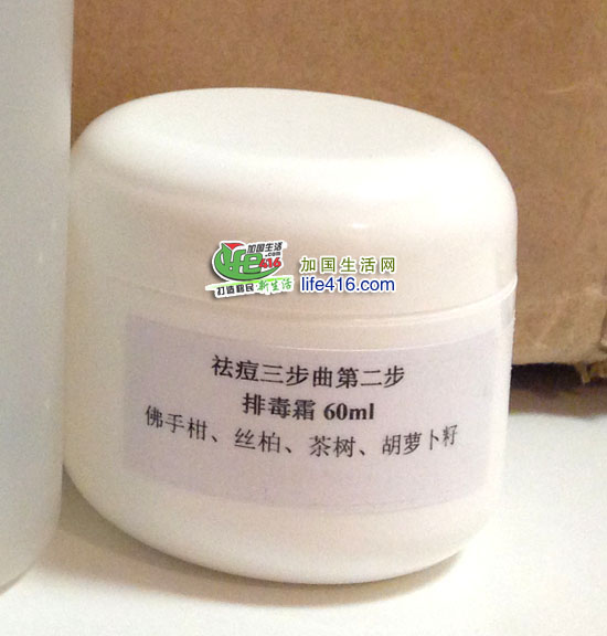 小编2014年12月18日有关“去痘/祛痘三步曲”配法的最新说明:去痘/祛痘三步曲经过近一年大家的使用后,网友们纷纷反馈各种意见。由于每人的痘痘成因不同、皮肤不同、体质不同,造成使用三步曲的效果各不相同。大家第一的反馈就是10ml或25ml的容量太少,痘痘还是红的呢,第一步就用完了。因此小编果断采用给大家配60ml的霜的方法,这种霜配出后,效果相当不错。因此,小编以后会以单独配第几步霜的方法帮助大家配霜,请大家和小编联系时,一定说明自己的痘痘情况,看自己可以使用第几步的霜。