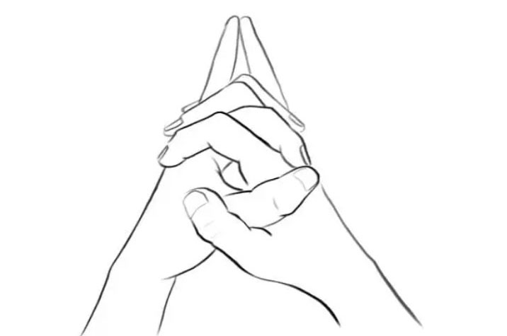 1、盘腿坐下后,依照上图结手印(双手手指交错,竖起两手的小指,使其指尖朝上,然后双臂抬起,将双手置于头顶中心区域)