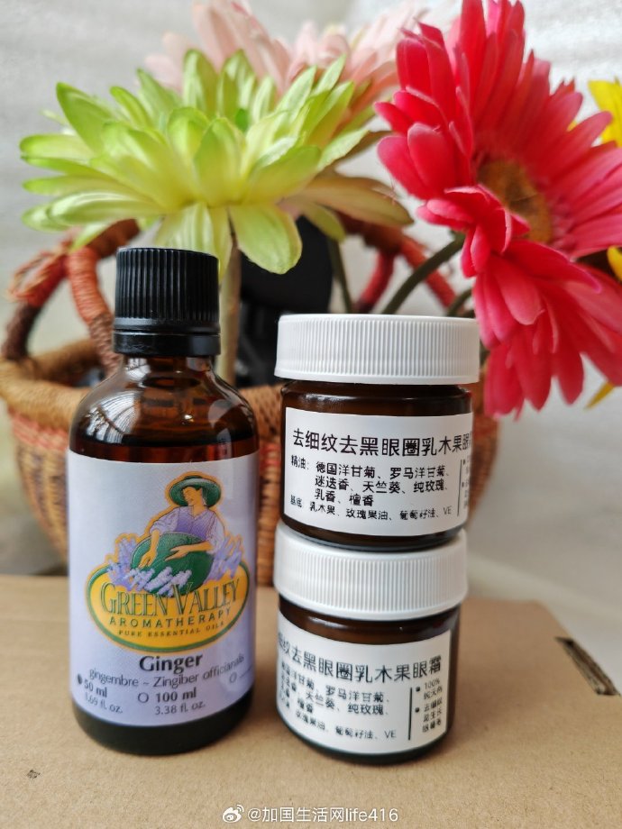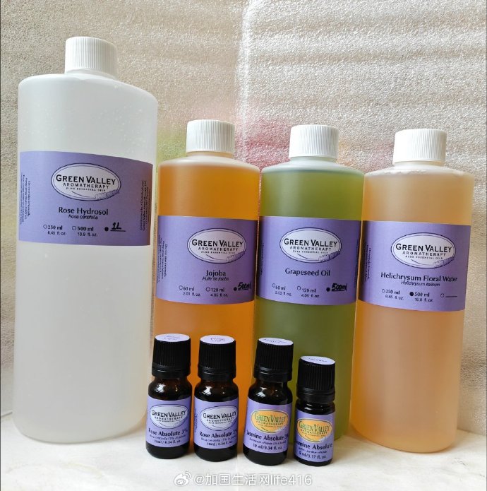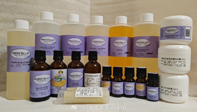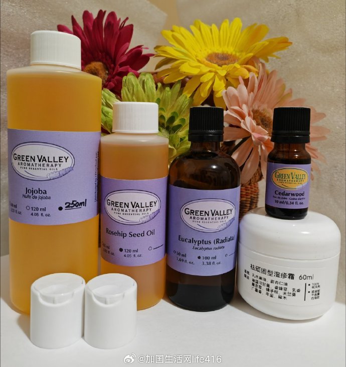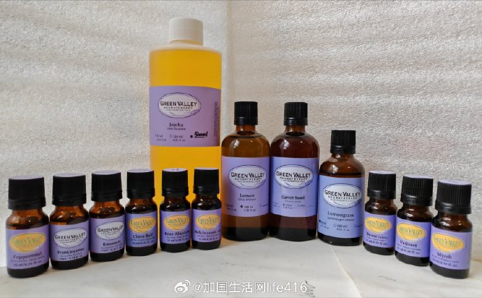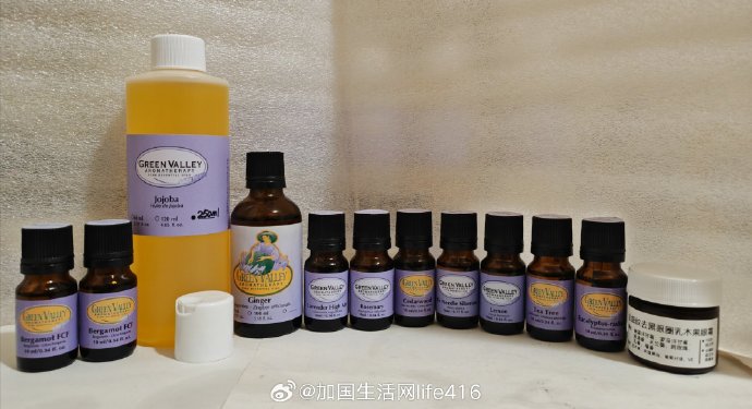 如何选择Green Valley 产品:Green Valley 的官方网站是:http://www.57aromas.com/。大家找到相应的产品,选择不同的容量,查看相应的价格,记下想要的产品(包括容量和数量)。GV家的产品是按照精油(Essential Oil)、基础底油(Carrier Oil)、基础底霜(Base Cream)、花水(Hydrosol)等进行分类的,网站全是英文的,如果想看中文介绍的话,小编这里有已经写的文章,包括:花水(详情请戳这里)、基础保湿霜配成的日霜晚霜和关节炎霜(有关Moisturizing Base Cream 的更多详情请点击这里)、眼霜(如何DIY 制作去细纹去黑眼圈乳木果眼霜?)、精油(请看精油专栏的系列文章)、去痘三步曲(如何去痘及配方)以及单方精油的介绍(请点击这里)、洗面奶(请点击这里)。大家下单前最好请做些研究,这样才能对自己想要的产品做到有的放矢。如有不懂的地方,请向小编咨询。最新增加的精油产品:湿疹起因及治疗方法 用乳木果调配祛湿疹霜很好用。另外,拼邮活动也接受国内朋友的订单,所有产品都可以预订,费用要加上寄国内的国际邮费、海关税、人工费和国内快递费。具体详情请通过微博(加国生活网life416)或微信(life416_com)咨询。