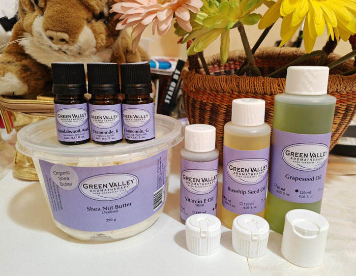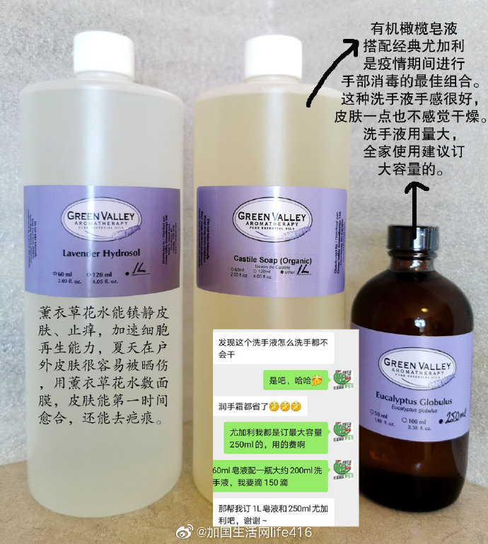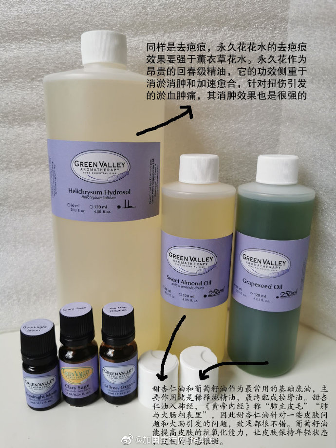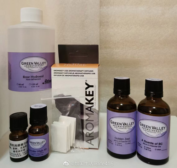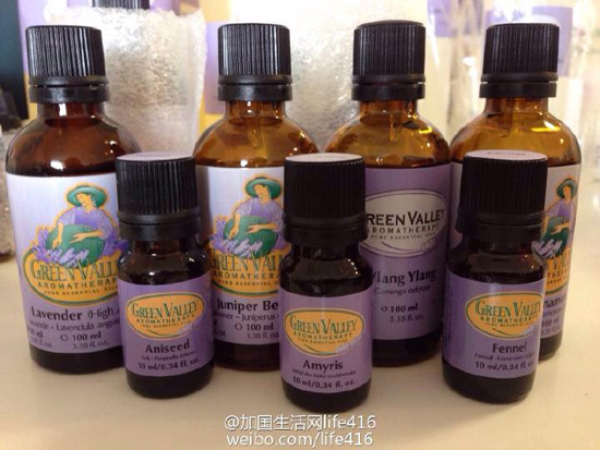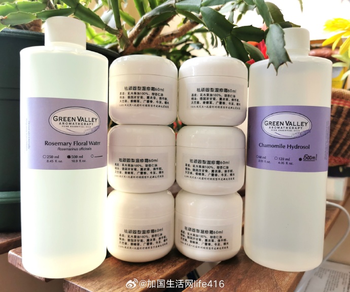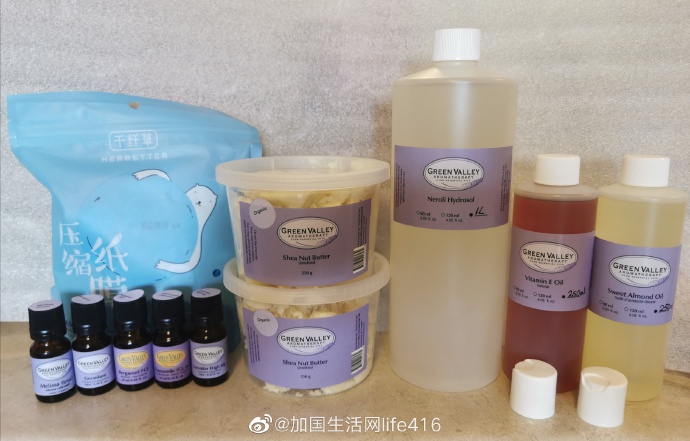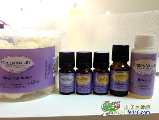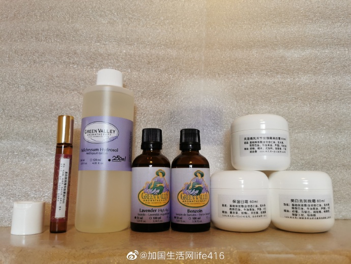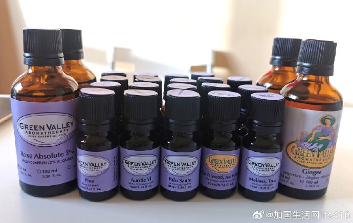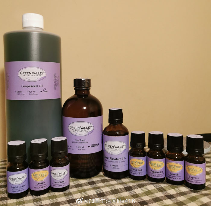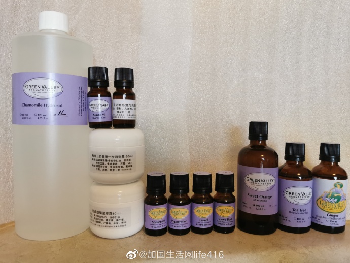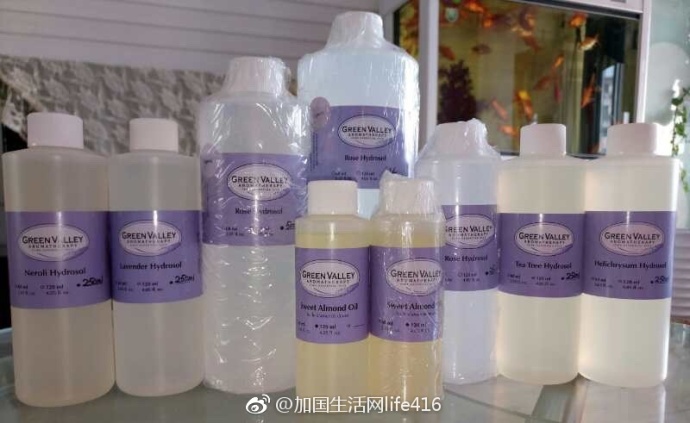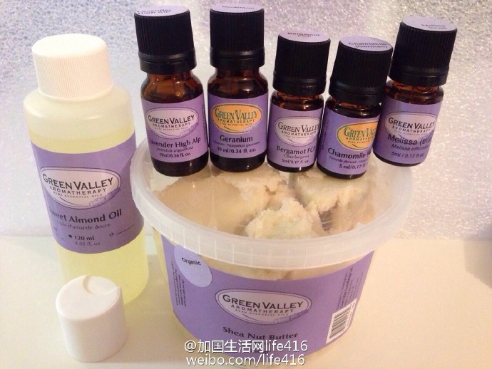 如何选择Green Valley 产品:Green Valley 的官方网站是:http://www.57aromas.com/。大家找到相应的产品,选择不同的容量,查看相应的价格,记下想要的产品(包括容量和数量)。GV家的产品是按照精油(Essential Oil)、基础底油(Carrier Oil)、基础底霜(Base Cream)、花水(Hydrosol)等进行分类的,网站全是英文的,如果想看中文介绍的话,小编这里有已经写的文章,包括:花水(详情请戳这里)、基础保湿霜配成的日霜晚霜和关节炎霜(有关Moisturizing Base Cream 的更多详情请点击这里)、眼霜(如何DIY 制作去细纹去黑眼圈乳木果眼霜?)、精油(请看精油专栏的系列文章)、去痘三步曲(如何去痘及配方)以及单方精油的介绍(请点击这里)、洗面奶(请点击这里)。大家下单前最好请做些研究,这样才能对自己想要的产品做到有的放矢。如有不懂的地方,请向小编咨询。最新增加的精油产品:湿疹起因及治疗方法 用乳木果调配祛湿疹霜很好用。另外,拼邮活动也接受国内朋友的订单,所有产品都可以预订,费用要加上寄国内的国际邮费、海关税、人工费和国内快递费。具体详情请通过微博(加国生活网life416)或微信(life416_com)咨询。
