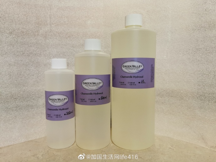 2、Green Valley的花水分不同瓶装,小瓶装是60ml,中瓶装是250ml,大瓶500ml,特大瓶1立升,更特大瓶4立升。瓶装容量不同,价格也不一样。就拿茶树花水来说: