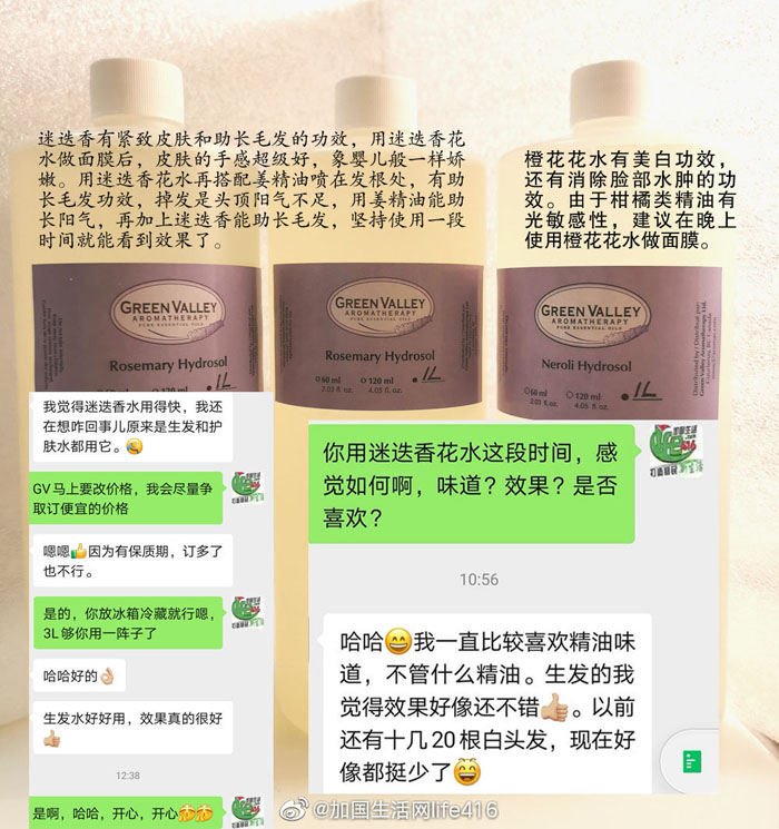 算一下,如果你自己在网上下订单,仅买一瓶花水,邮费也是10加币,是不是挺不合算的?另外,Green Valley 的个人订单如果少于50,人家是不会卖给你的。所以拼邮还是特别方便大家的。