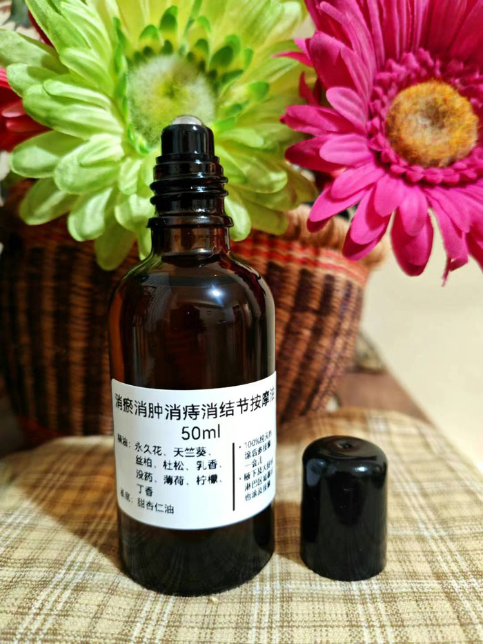 消瘀消肿消痔消结节按摩油也换标签了,配方没有改,因为乳香在原始配方里是臣药,一直起着活血化瘀的功效,大家的反馈很好。为了让这款按摩油更加好用,小编订了几个带滚珠的瓶子,可以在皮肤上滚动出油的,感兴趣的朋友联系小编哈。