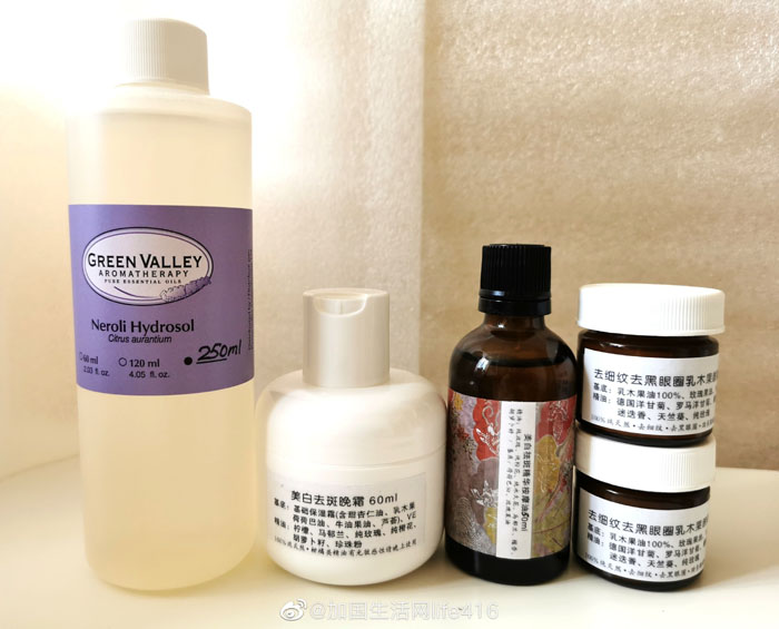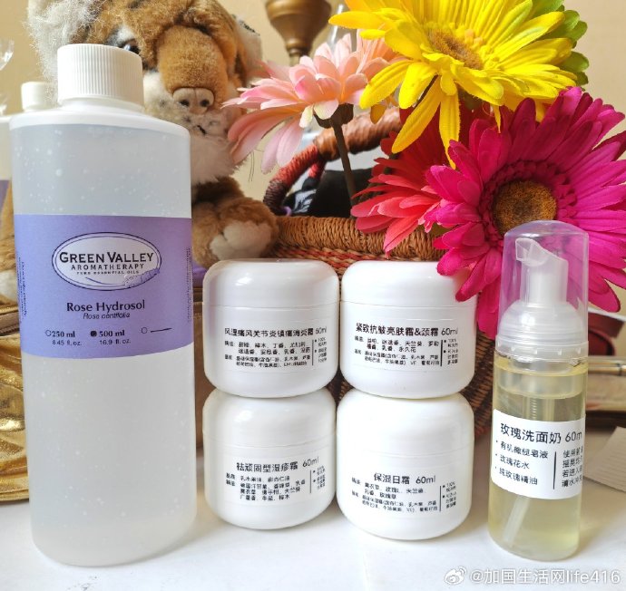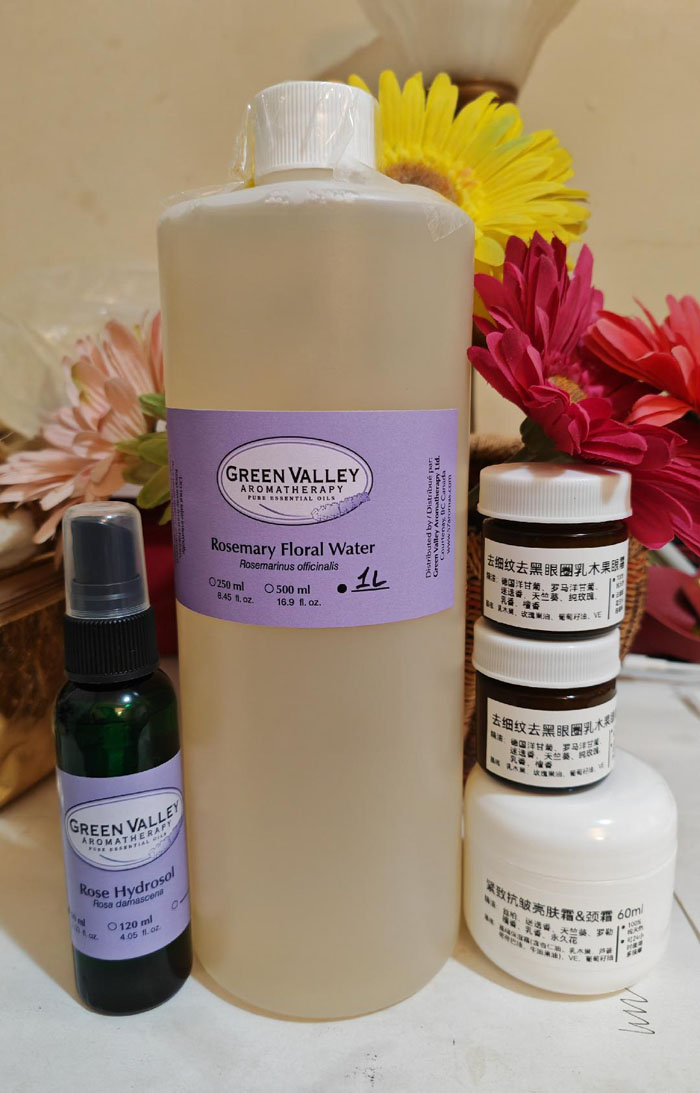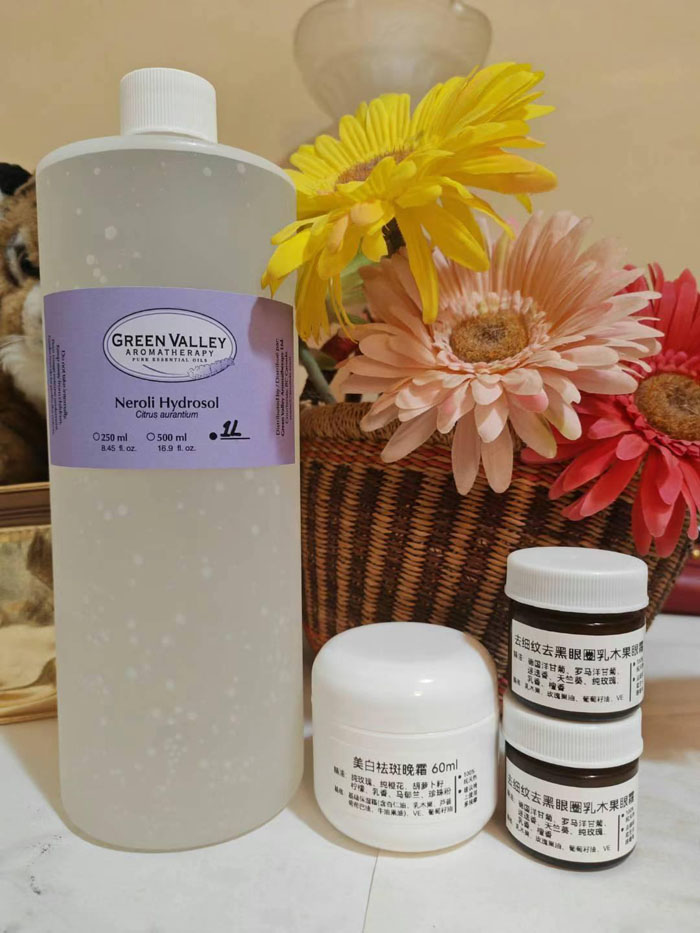 下图基础保湿霜可以配各种面霜,下两图玫瑰花水和橙花花水都是订量最大的花水
