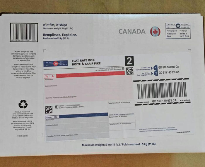 小编又第一时间赶在Canada post罢工之前把需要寄给大家的货寄出,这种flat rate box在5公斤以内加拿大境内邮寄同一个价格,适合订花水的邮寄。这个箱子是Medium大小,$24.99加税。如果是以前,小编寄将近3公斤货到温哥华,怎么也要$40左右,现在就是$24.99加税,是不是便宜许多。就是吧,Canada post开始罢工了,晕……