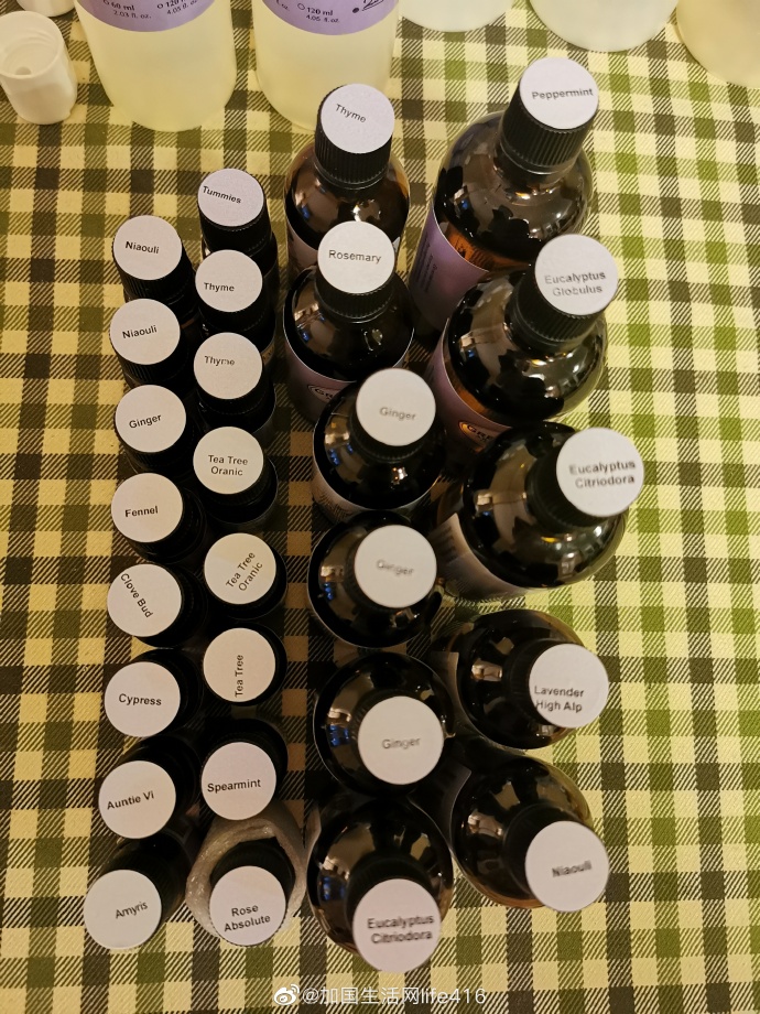 终于凑齐预防流感病毒的五款精油了:茶树、尤加利、百里香、绿花白千层和柠檬,赶紧上来召唤“神龙”(给大家秀秀)