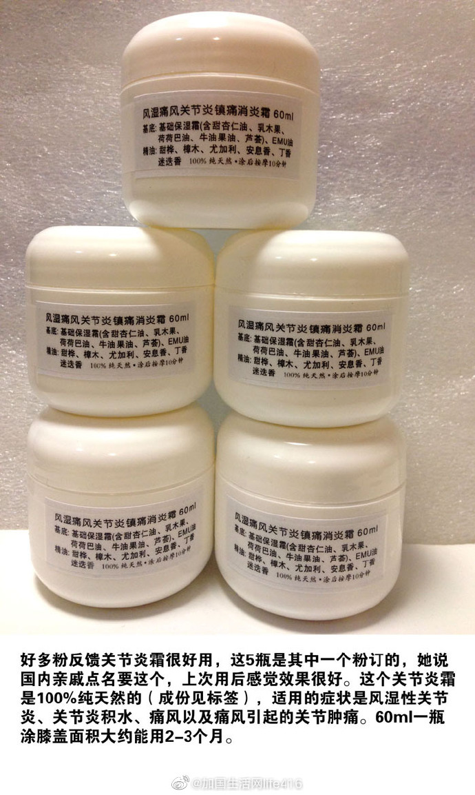 感觉有段时间没和大家介绍关节炎霜了,它适用的症状是风湿性关节炎、关节积水、痛风以及痛风引起的关节肿痛。如果是扭伤引起的筋骨疼痛也有效果。如果想根据自己的情况DIY配关节炎霜当然OK啦,想止痛效果多一些,可以多加安息香Benzoin精油,尤加利是消炎的,乳香前两图刚刚介绍完,大家自己去翻哈