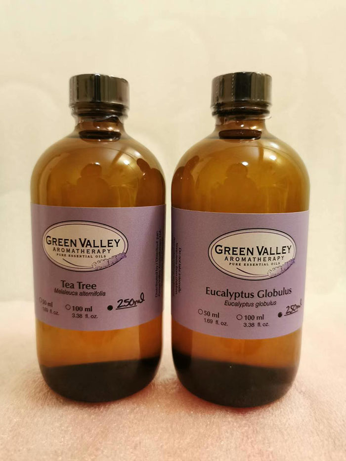 茶树和尤加利精油,尤加利是扩香性杀菌,疫情期间必备;茶树是接触性杀菌,可用于皮肤上各种炎症,尤其是针对女性生理期所产生的炎症,效果很好