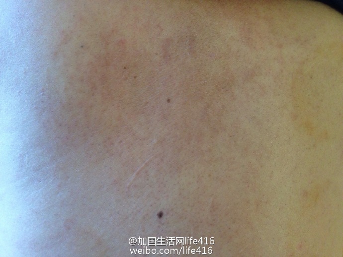 小编(2016年10月24日):以下这张照片是小编老公的湿疹,是的,他的湿疹又发作了,而且还挺厉害的,起在后背。这坏孩子有持无恐、NO ZUO NO DIE,还问呢,湿疹不是好了吗,为什么又起了?!小编其实天天都在和他讲,根据中医的五运六气的理论,2016年是水运之年,水多湿气大,特别容易积累不好的湿气,一定要少喝冰饮料、少吹空调,然并卵他偏偏不听,等湿疹犯了痒得难受皮都挠破了才老实了!!小编直接就用了牛皮癣霜并加上拔罐(每天晚上都拔一次,那一个个小粒粒里被拔出了许多黄水加血水),2周后痊愈。