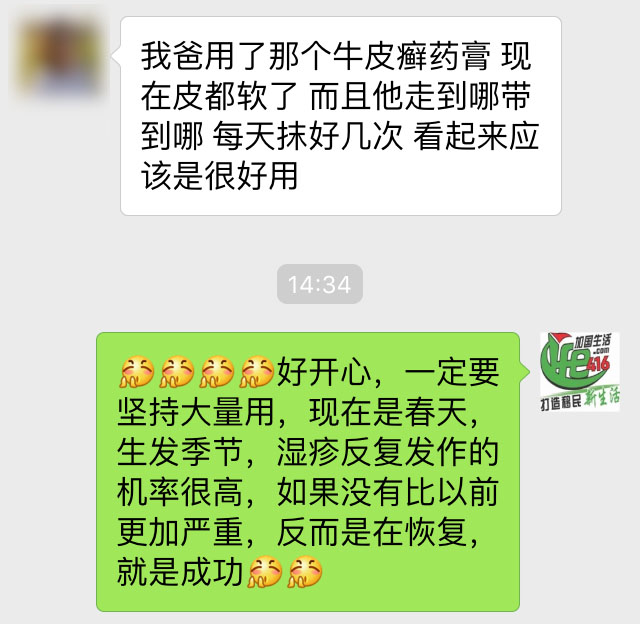 清梦思影:你好Stella,我老公用那个牛皮癣霜效果挺好,涂完之后皮肤表面的皮屑掉的很快,颜色也淡了一些。