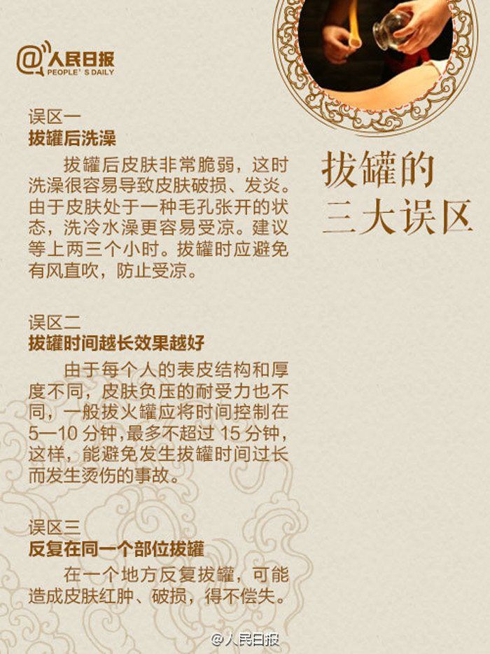 2、有心脏病、孕妇、过饱、过饥、醉酒时都不适宜拔罐