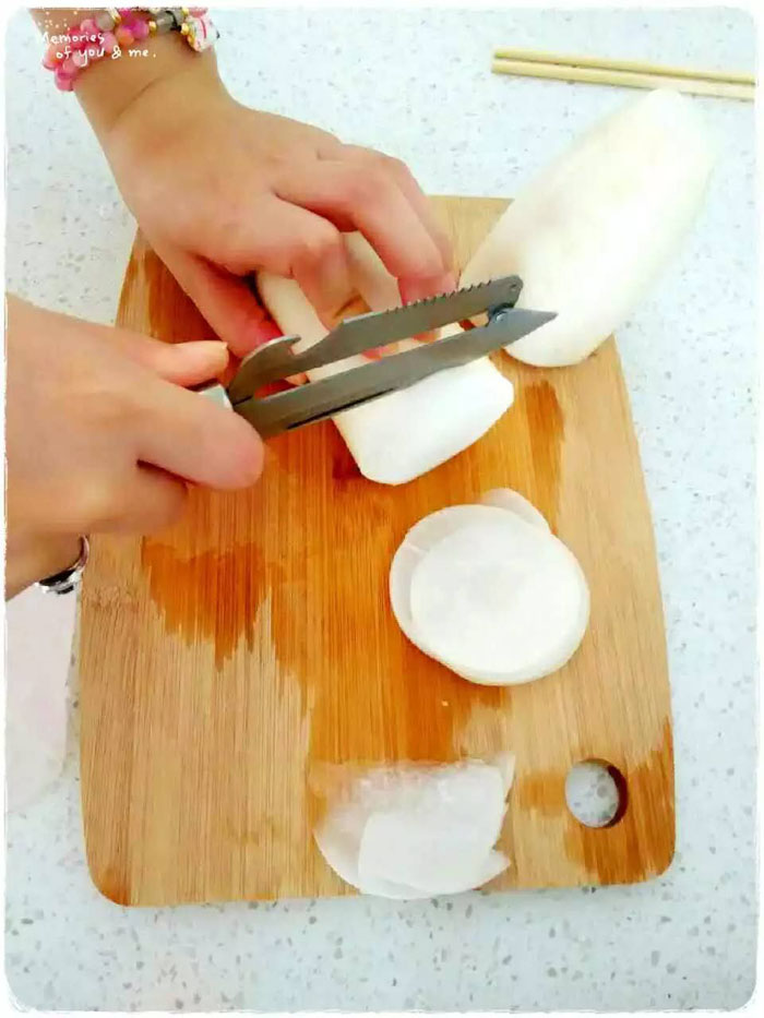 3、等水稍凉后,可以给小朋友喝,同时,这个萝卜片此时也变得非常软,如果孩子两岁以上了,可以给孩子慢慢地嚼,一点点地吃下去。两岁以内的宝宝可以只喝这个萝卜水。
