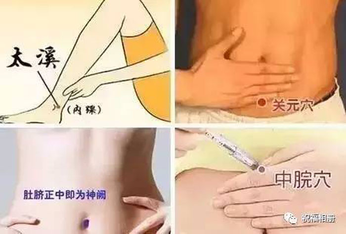 冬至艾灸任脉:太溪、关元、神阙、中脘。