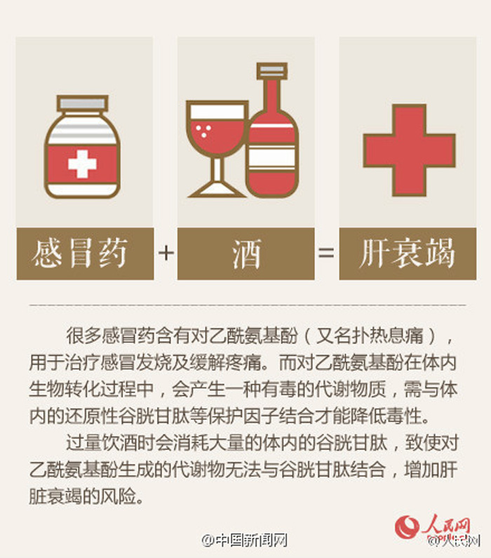 过节聚会一波接着一波。但你知道吗?吃着药,喝着酒,真要命!①感冒药+酒:肝脏衰竭风险;②头孢类抗生素+酒:严重将致命;③解热镇痛药+酒:可致消化道出血;④安眠药+酒:恐致命。