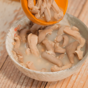 3、内膜外翻,放入5、60度的水中,加1勺料酒汆烫一下;