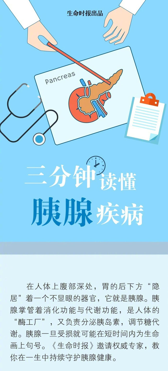 在人体上腹部深处,胃的后下方“隐居”着一个不显眼的器官,它就是胰腺。胰腺掌管消化与代谢功能,是人体的“酶工厂”,并分泌胰岛素,调节糖代谢。胰腺一旦受损就可能在短时间内为生命画上句号。《生命时报》邀请权威专家,教你在一生中持续守护胰腺健康。