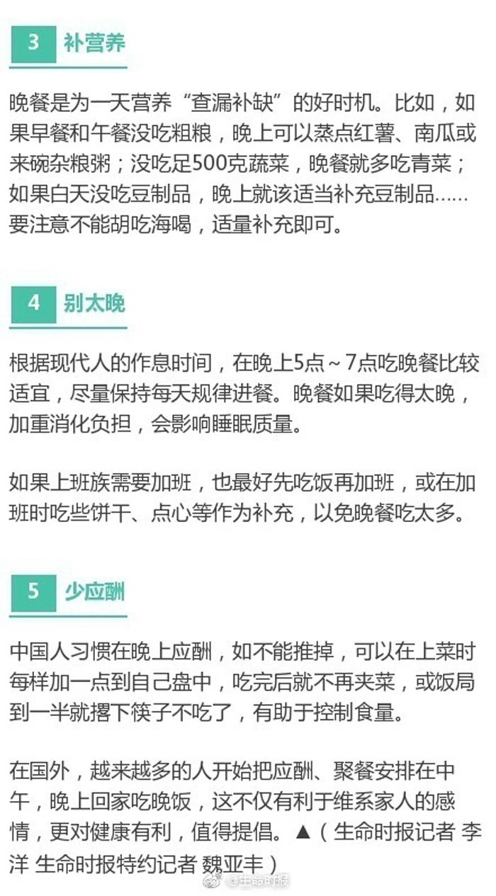 一日三餐中,国人的晚餐最五花八门,有人大鱼大肉,有人以粥裹腹,有人干脆不吃,时间跨度也从傍晚五六点一直到凌晨一两点。逃离“晚餐危机”,从了解开始。《生命时报》邀请权威专家,告诉你晚餐的正确食用方式。